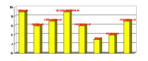 На основе этих ответов, мы увидели, что в классе больше всего детей умных, трудолюбивых, заботливых и скромных. Таким образом, наш автопортрет в 5 классе получился таким: